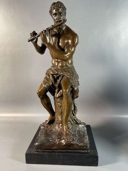 LOT 78 - Isidore Bonheur Bronze Scuplture of Man Playing Flute, Approx 18” Tall, Very Heavy