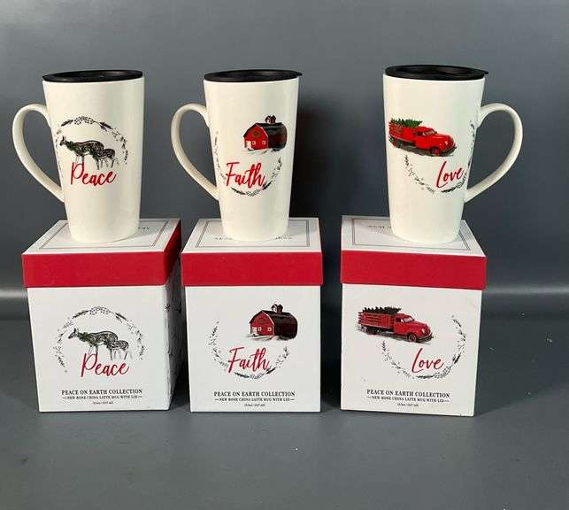 LOT 961 - Peace on Earth New Bone China Latte Mug With Lid 18.5 oz. With Box (3)