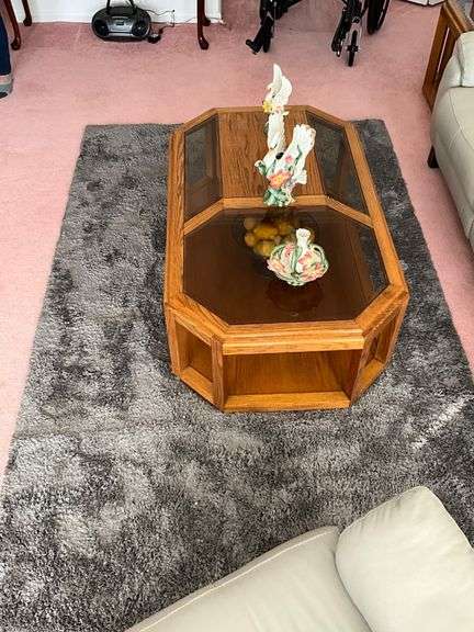 Unique Loom solid shag area rug from the Solid Shag Collection. The rug measures approximately 5′ x 8′ according to the label and features soft gray pile with jute backing.