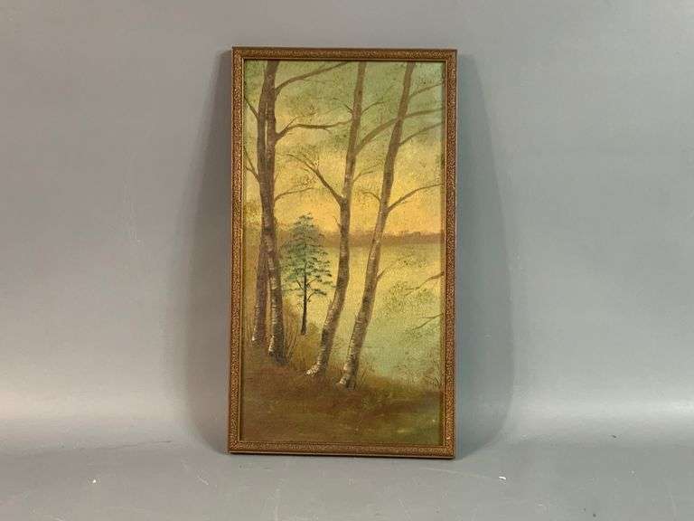 LOT 2450 - Vintage Birch Tree Painting 14” x 8”